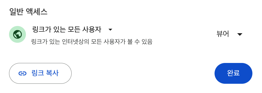 3. 공유하기를 눌러서 링크가 있는 모든 사용자로 변경한다.